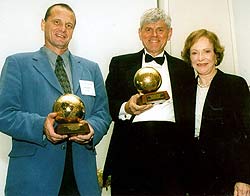 Mrs. Rosalynn Carter with the winner of JRCPA in Massachusetts, Clark University and University Park Partnership.