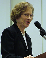 Mrs. Rosalynn Carter speaking at the JRCPA event at the University of Massachusetts in Boston.